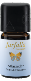 Ihre Heimat ist das Atlasgebirge in Marokko, das noch grosse Zedernbestände birgt. Ein Besuch dieser wunderschönen Wälder mit den uralten Baumriesen ist zutiefst beeindruckend. Für die Gewinnung des ätherischen Öls verwendet Farfalla Späne aus Zedernholzabfällen aus Bio-Wildsammlung. Zedernöl verströmt eine balsamische Wärme und verkörpert Stärke, Würde und Sanftheit. Zeder ist sehr gut als Zugabe in einem Haaröl für den Haarboden geeignet.