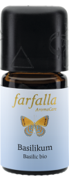 Übersetzt heisst Basilikum «königlich», und nobel verleiht dieses Kraut manch südländischer Speise den letzten Schliff. Das energetisierende ätherische Öl fördert die Konzentration, schafft Klarheit und entspannt. Basilikum auf der Haut nur in grosser Verdünnung (max. 1%) verwenden! Während der Schwangerschaft sowie bei Babys und Kleinkindern vermeiden.
