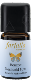 Der aus dem Benzoeharz gewonnene Duft ist warm, balsamisch und süss, er erinnert an Vanille und Schokolade. Benzoe Resinoid vermittelt Geborgenheit, Schutz und Wärme und ist ein richtiger Seelenwärmer. Pflegend und beruhigend bei empfindlicher Haut. Benzoe ist in der Naturparfumerie ein wichtiger natürlicher Fixateur, d.h. es bindet stark flüchtige Kopf- und Herznoten.